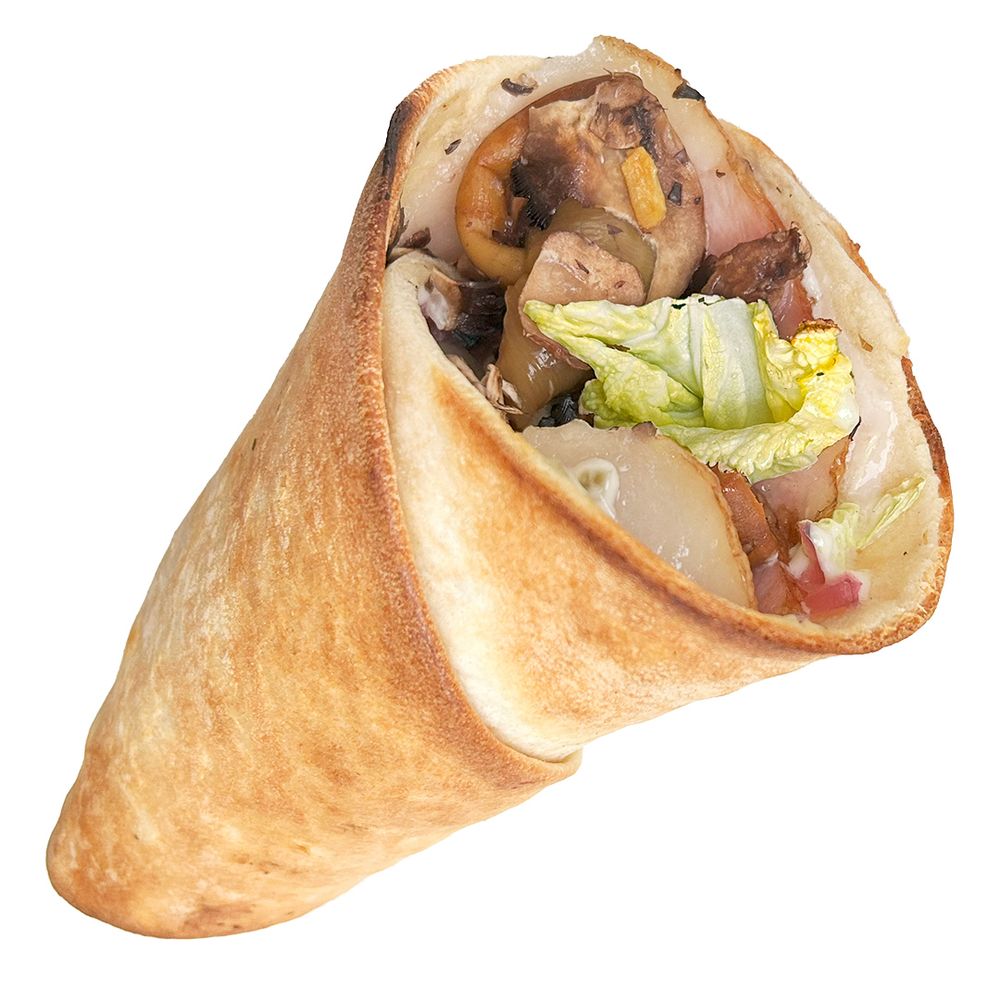 Мясо на выбор, Фокачча, Соус сметанный с грибами, Пекинская капуста или Салат листовой, Лук маринованный, Шампиньоны, Опята консервированные