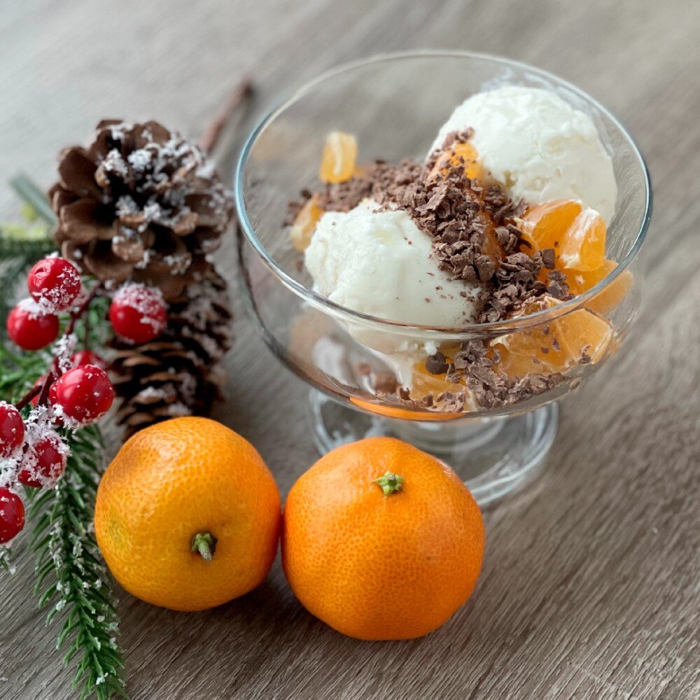 Мороженое, Мандарин свежий, Сироп, Шоколад